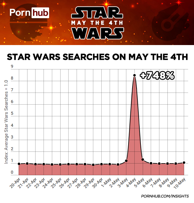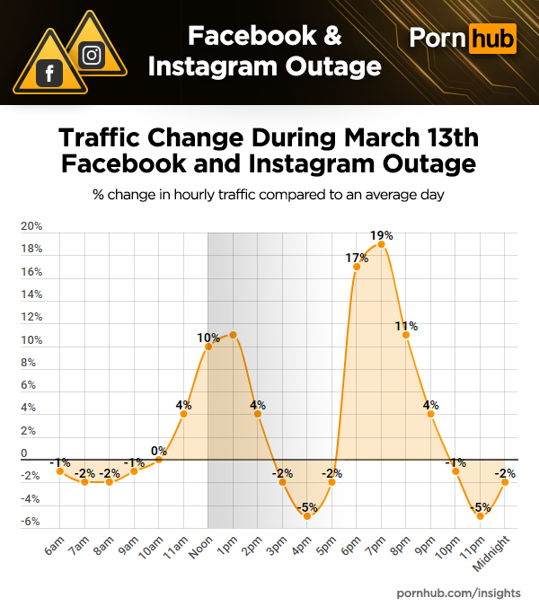 The following chart shows various worldwide holidays that cause traffic to drop on Pornhub in the celebrating countries. National holidays like Canada Day and Australia Day caused a -16% drop in their respective countries. Walpurgis Night caused a -22% drop in Sweden, Bastille Day -13% in France, Carnival Monday -10% in Brazil and -17% during Holika Dahana in India.