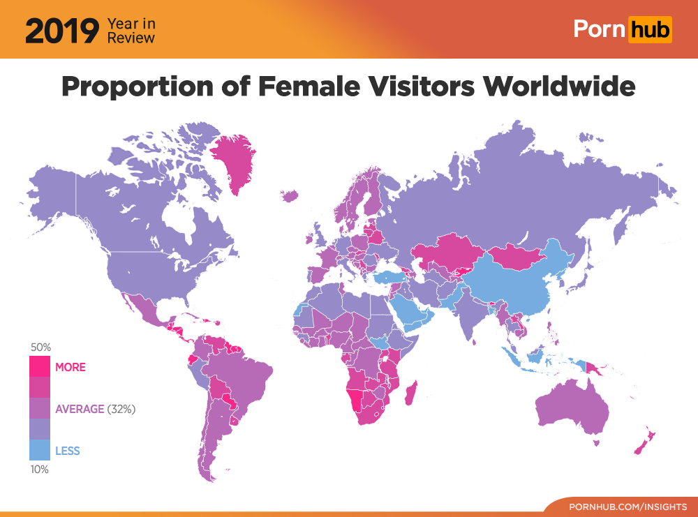 Below, you will find the data that Pornhub’s trusty statisticians have compiled for you, colorful charts to help you visualize this Year in Review, and commentary to help make sense of the wild world of tech, adult entertainment, and everything in between! As you read along we’ll point out what’s changed year over year, but you can always check out 2018 and 2017 reviews as well.