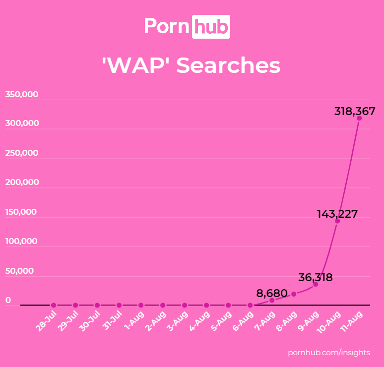 Interest in the artists flowed over to Pornhub, where searches for Cardi B grew by 235% and Megan Thee Stallion by 210% compared to their average daily searches.