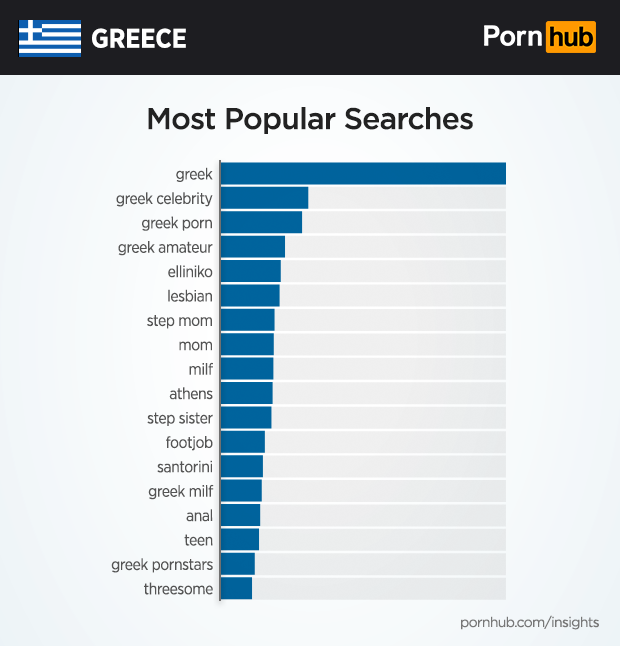 When it comes to popular searches, Greek’s a very patriotic. The most popular search by far is “greek” followed by “greek celebrity”, “greek porn” and “greek amateur”.