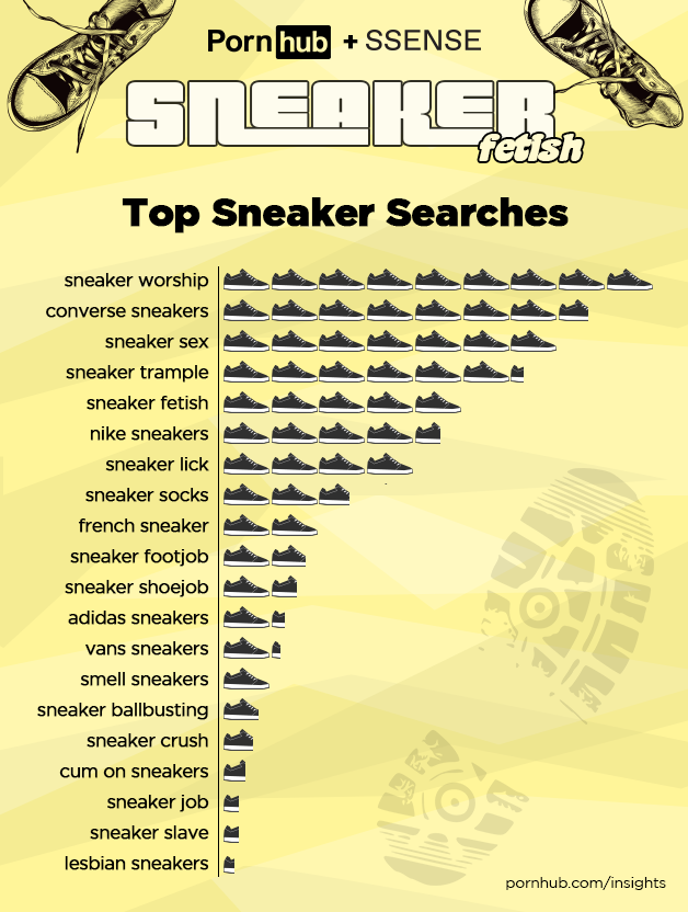 Pornhub Insights has delved into lots of interesting fetishes over the years, including Feederism, Wedgies, Golden Showers, Cuckolding, Spectrophilia, Bronies and even Clowns. In today’s edition of Insights, we’re joined by the editorial team at SSENSE to dive feet first into the sneaker fetish.